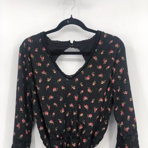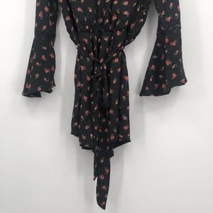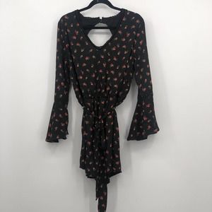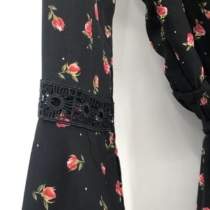 Disney Princess Dress Floral Tie Waist Flounce Sleeve Smocked Open Back Black XL