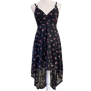 Disney Princess Dress Juniors S Black High-Low Lace Spaghetti Strap Floral Vneck