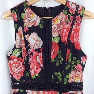 Disney Princess Dress Womens Medium Red Rose Black Floral Mini Tank Sleeveless