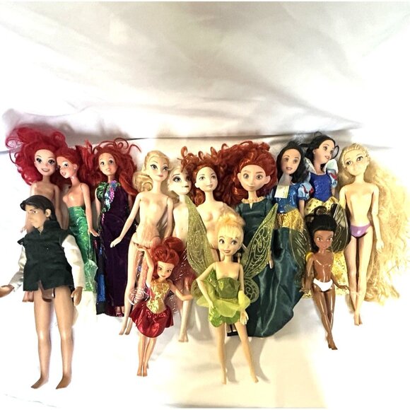 Disney Princess & Fairies Doll Lot 17 Ariel Merida Elsa Tinker Bell Rapunzel