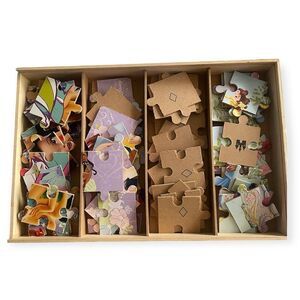This set of 4 Disney wooden puzzle set is an absolute pleasure! Each puzzle has 24 pieces for hours of educational playtime! Comes with original wooden storage box.