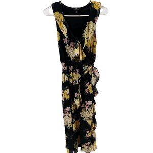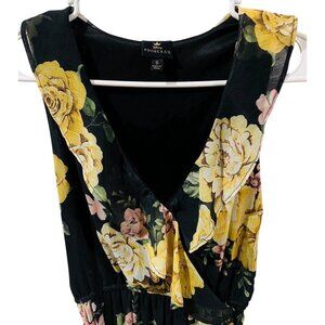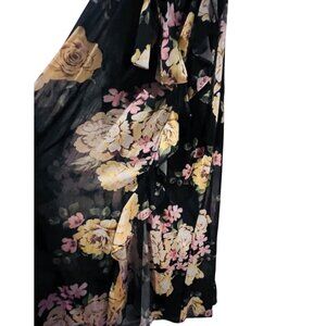 Disney Princess Floral Maxi Dress W/ Belted Waist & Detailed Sheer Overlay Small