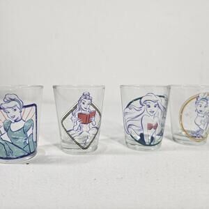 Disney Princess Glassware Set of 4 - 1.5 Oz Shot Glasses Ariel/Belle/Tiana/Cinde