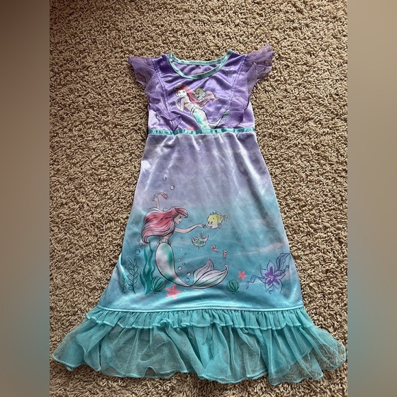 Disney Princess Little Mermaid nightgown, size 5. Gently used and in great condition. Soft and comfortable with cute Ariel and Flounder design and ruffle hem. Perfect for any little Ariel fan.