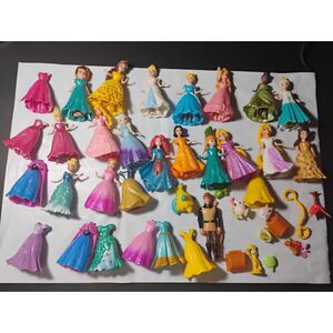 This is for a Disney Princess Magiclip Figure Lot 19 Figures Accessories & More. Please see all pics for what is included in this listing as well as condition which is good showing wear.