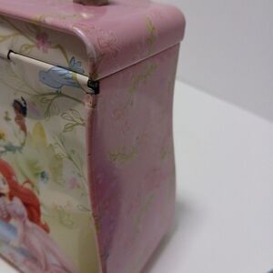 Adorable Disney Princess metal purse-style box with a colorful beaded handle. Features classic princess designs and a sturdy snap closure. Perfect as a handbag for kids, snack box, trinket/jewelry holder, or collectible keepsake for Disney fans.