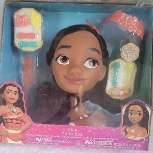 Create magical hairstyles with the Disney Princess Moana Styling Head. Featuring black hair, this toy inspires creativity and fun.