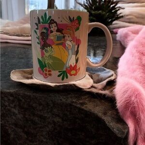 Charming Disney mug featuring beloved princesses. Vibrant pink and green design. Perfect for coffee or tea lovers.