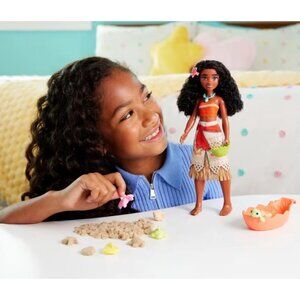 Disney Princess Ocean Friends Moana Doll with Moldable Sand, Animal Friend & 8 A