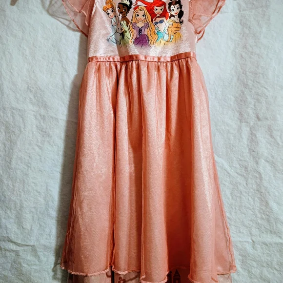 Adorable girl's 4T nightgown with Disney princesses. Soft and silky peach fabric. Ideal for bedtime fun. Smoke-free and pet free home.
