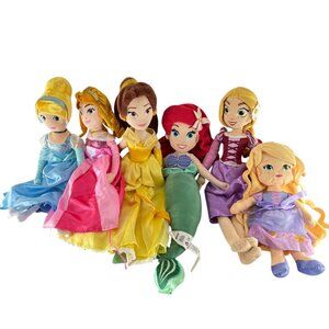 Disney Princess Plush Dolls Set Cinderella Belle Ariel Rapunzel Aurora