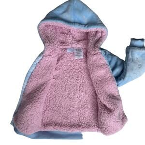 Disney Princess Sherpa Lined Jacket Girls 5 Light Blue Pink Gold Hood Winter SEE