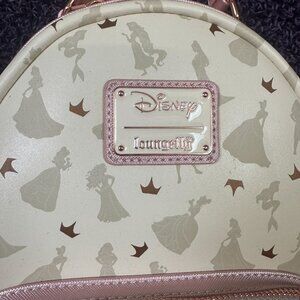 Disney Princess Silhouette Rose Gold Loungefly. Great bag for the parks. Has a wide pocket in the front and pockets inside.