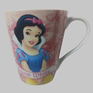 This ceramic mug features a vibrant Snow White design, blending a pink and white floral background. Its 10.oz capacity ensures functionality, while being microwave and dishwasher safe adds convenience.is like new without box from smoke and pet free home