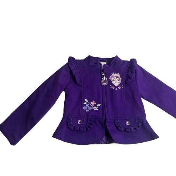 Disney Princess Sofia Full-Zip Sweater Purple Ruffle Embroidery 11"x12 Jacket 2T