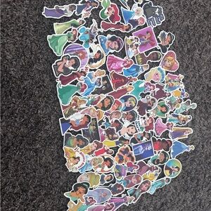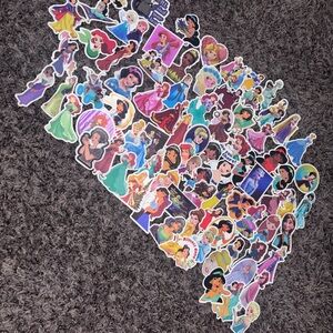 Colorful Disney Princess stickers featuring various characters. Perfect for decorating and crafts.