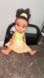 • Outfit: Green gown with floral skirt & tiara