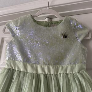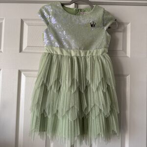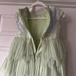 Disney Princess Tiana Girls Dress Sz 9/10 Green Tiered Sequins Fairycore Tulle