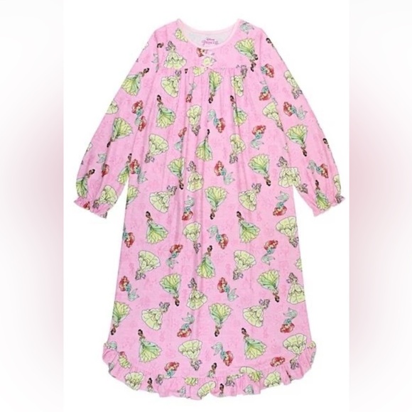Adorable Disney nightgown with princess prints. Soft pink fabric. Perfect for bedtime fun.