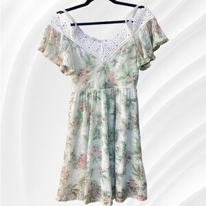 Gorgeous Disney dress floral—pink and green! Peekaboo shoulders GUC.
