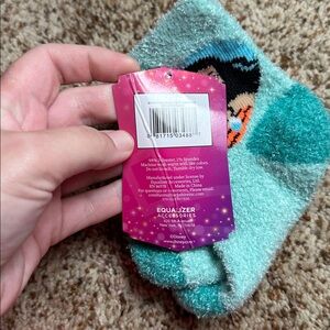 Soft socks with a Disney Princess design. Features vibrant teal and aqua colors.