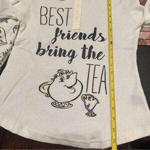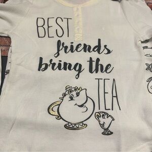 Disney Princess pajama set of 3 pcs color cream size M measure top armp to armpit 17”1/2 shoulder from down 24” long sleeve 24”1/2 pants 28” long New out tags