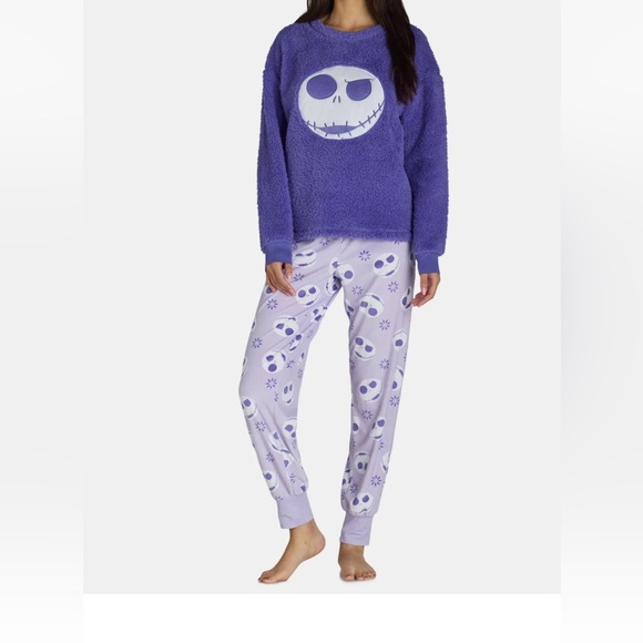 Cozy up in this Disney pajama set. Features a playful skull motif. Soft and comfortable for lounging.