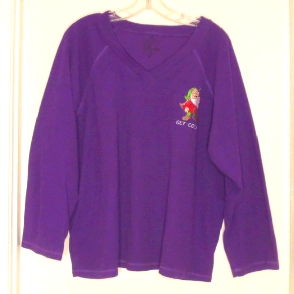 Disney Purple Plus Size 2X Embroidered Graphic Grumpy Get Cozy Fleece Lounge Top