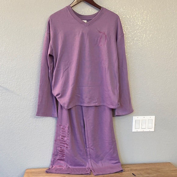 Cozy purple pajama set with Disney embroidery. Perfect for lounging.