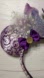 Charming Disney mouse ears with purple and silver swirls. Features a sparkling bow and tulle accent. Perfect for dress-up fun.