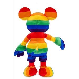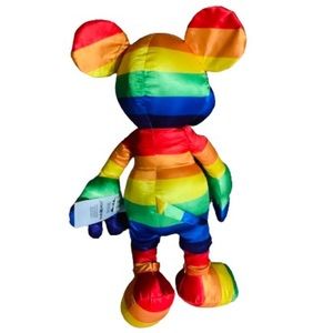 Celebrate love, inclusivity, and pride with this vibrant Disney Mickey Mouse Plush from the Rainbow Collection 2020. Standing at 15.5 inches, Mickey is dressed in beautiful rainbow colors, representing the LGBTQ+ Pride flag. This collectible plush is perfect for Disney fans and allies alike, bringing a touch of magic and diversity to your collection. A rare find and a must-have for any Disney enthusiast!