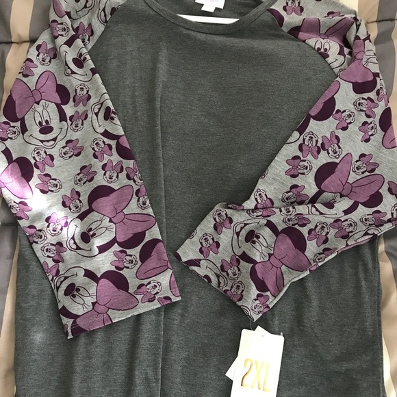 Charcoal gray with light gray and purple Minnie Mouse sleeves