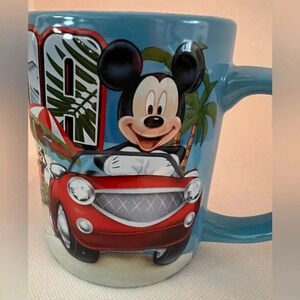 Rare 3D embossed ceramic mug. FLORIDA is raised. It features Mickey Mouse, Goofy, Minnie Mouse, and Donald Duck at the beach. Mickey is driving a red car. Brand new. Never used. NWOT.