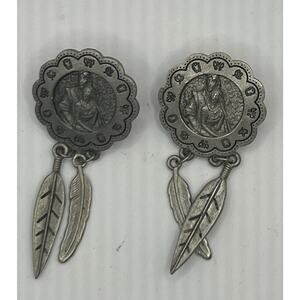 Disney Rare Pocahontas Pewter Oval & Feather Dangle Earrings Oops Daisy John