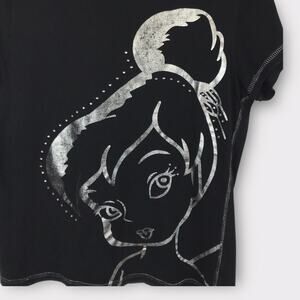 Rare Disney Silver Tinker Bell Graphic Black Short Sleeved Tee