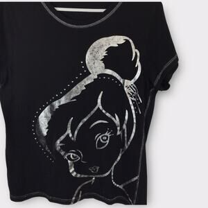 Disney Rare Tinker Bell T-Shirt Black & Sliver Bling Short Sleeved Tee