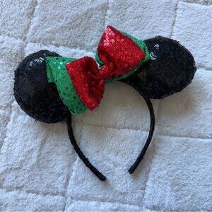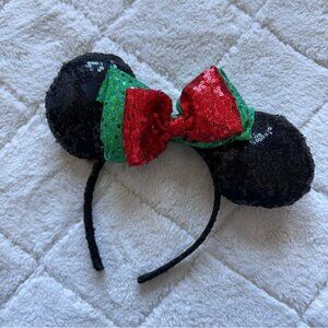 Disney | Red & Green Sequin Minnie Mouse Ears Headband | One Size