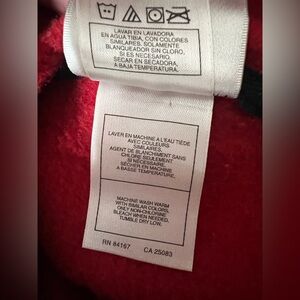 Cozy red hoodie featuring Mickey Mouse embroidery. Toggles on the hoodie strings. Adult small, EUC. Ideal for casual wear. Smoke free home.
