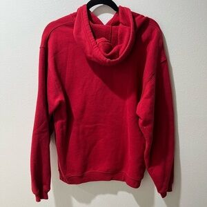Cozy red hoodie featuring Mickey Mouse embroidery. Toggles on the hoodie strings. Adult small, EUC. Ideal for casual wear. Smoke free home.