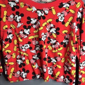 Disney Red Mickey Mouse Cropped Crewneck Long Sleeve Shirt Size Small