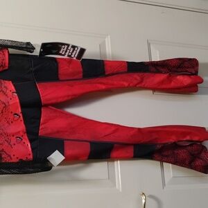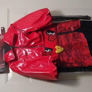 Bold red superhero costume with lightning accents. Perfect for play and parties.