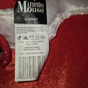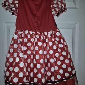 Charming Disney superhero dress. Red with white polka dots. Puff sleeves and black waist bow.