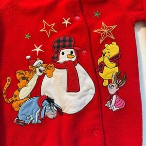 Disney Red footie pjs Pooh Eeyore piglet tigger snowman size 9-12 Christmas