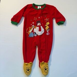 Disney Red footie pjs Pooh Eeyore piglet tigger snowman size 9-12 Christmas