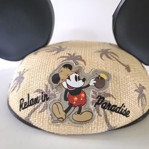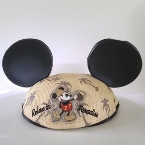Disney Relax In Paradise Mickey Mouse Ear Hat Straw Coconut Palm Trees One Sz