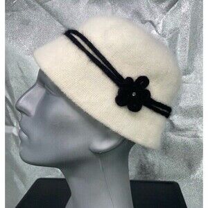 Disney Resort Hat Cloche Fuzzy Floral Ivory Bell Shape Close Fitting Short Brimm