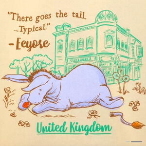 ''Typical.'' When on vacation from the Hundred Acre Wood, Eeyore loses his tail again. Join him on the journey in this long sleeve tee with scoop neckline, part of our Pooh in London Collection.