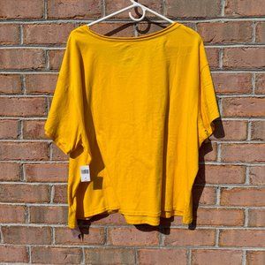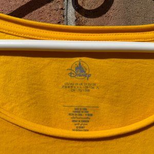 Embrace the essence of summer with this vibrant yellow, officially licensed Disney T-shirt, designed for women who love to add a touch of magic to their wardrobe. Direct from the Disney Resorts, this 2X size T-shirt features a unique design with a large, loose neckline for a stylish shoulder drape and extra fabric at the waist to tie as a summery crop top.