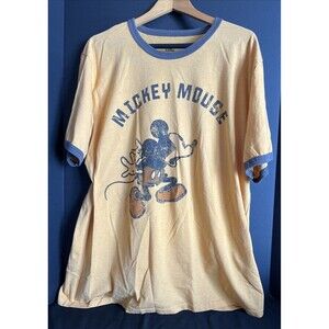 Disney Retro Mickey Mouse Yellow Gray Piping T Shirt 2XL
