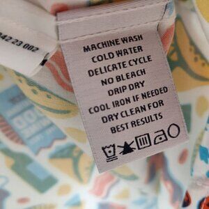 New with tag Reyn Spooner X Disney Epcot Food & Wine Festival camp shirt in size large. All over printed rayon fabric. Button front. Chest pocket. Short sleeves. Straight hem with vented side seams.